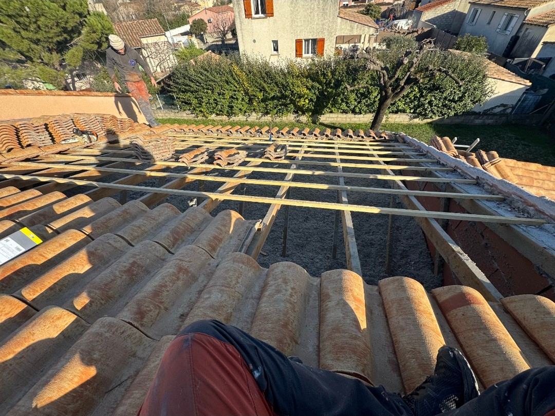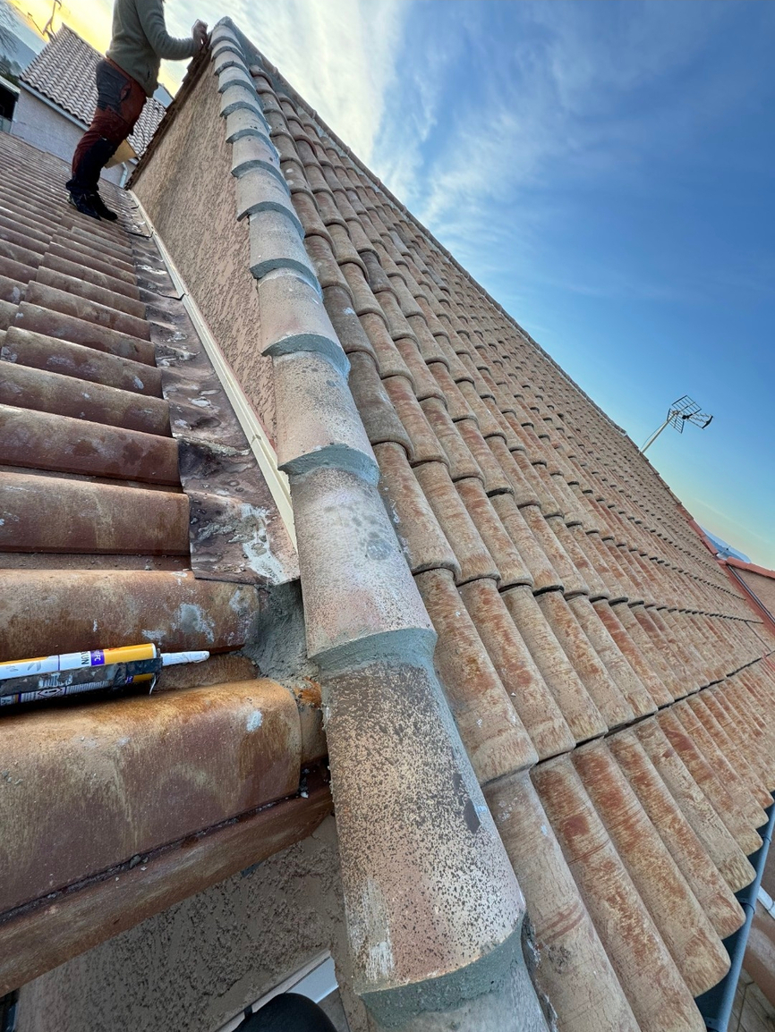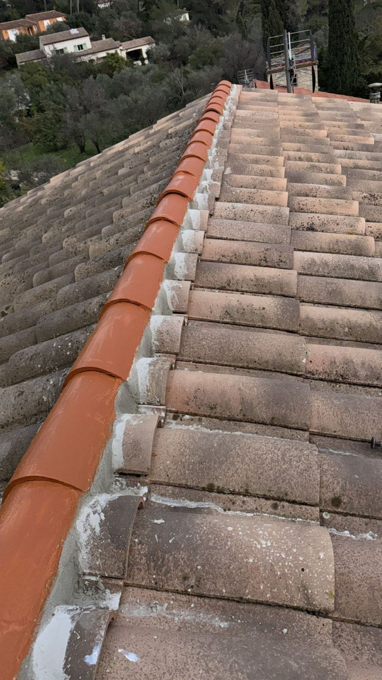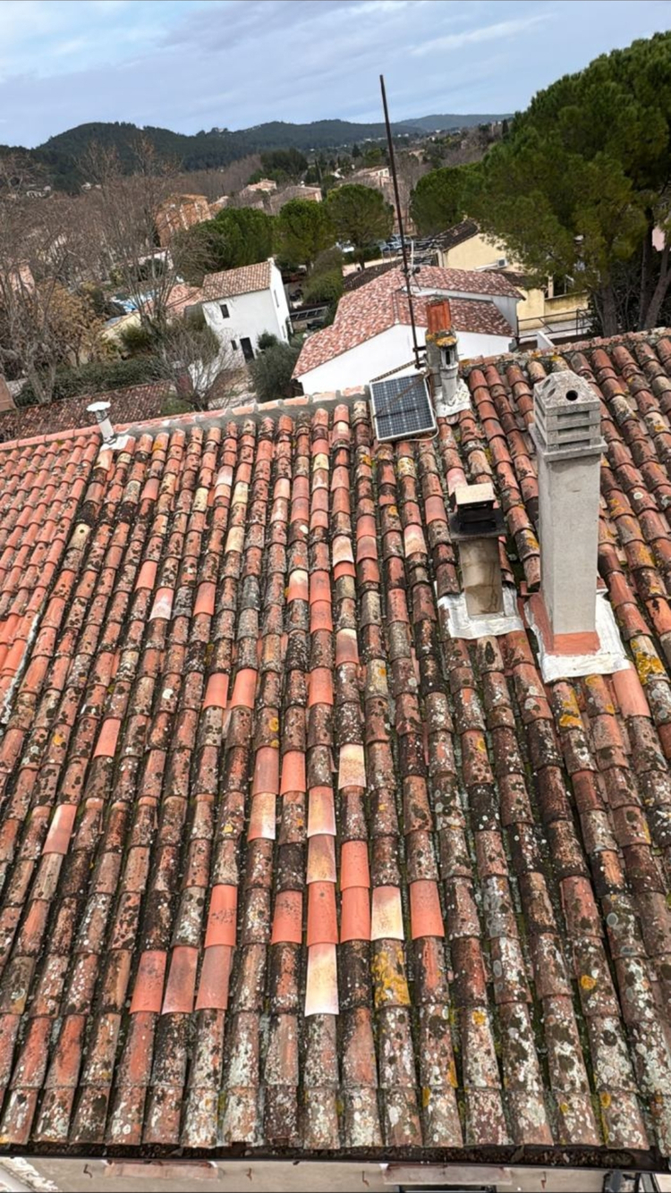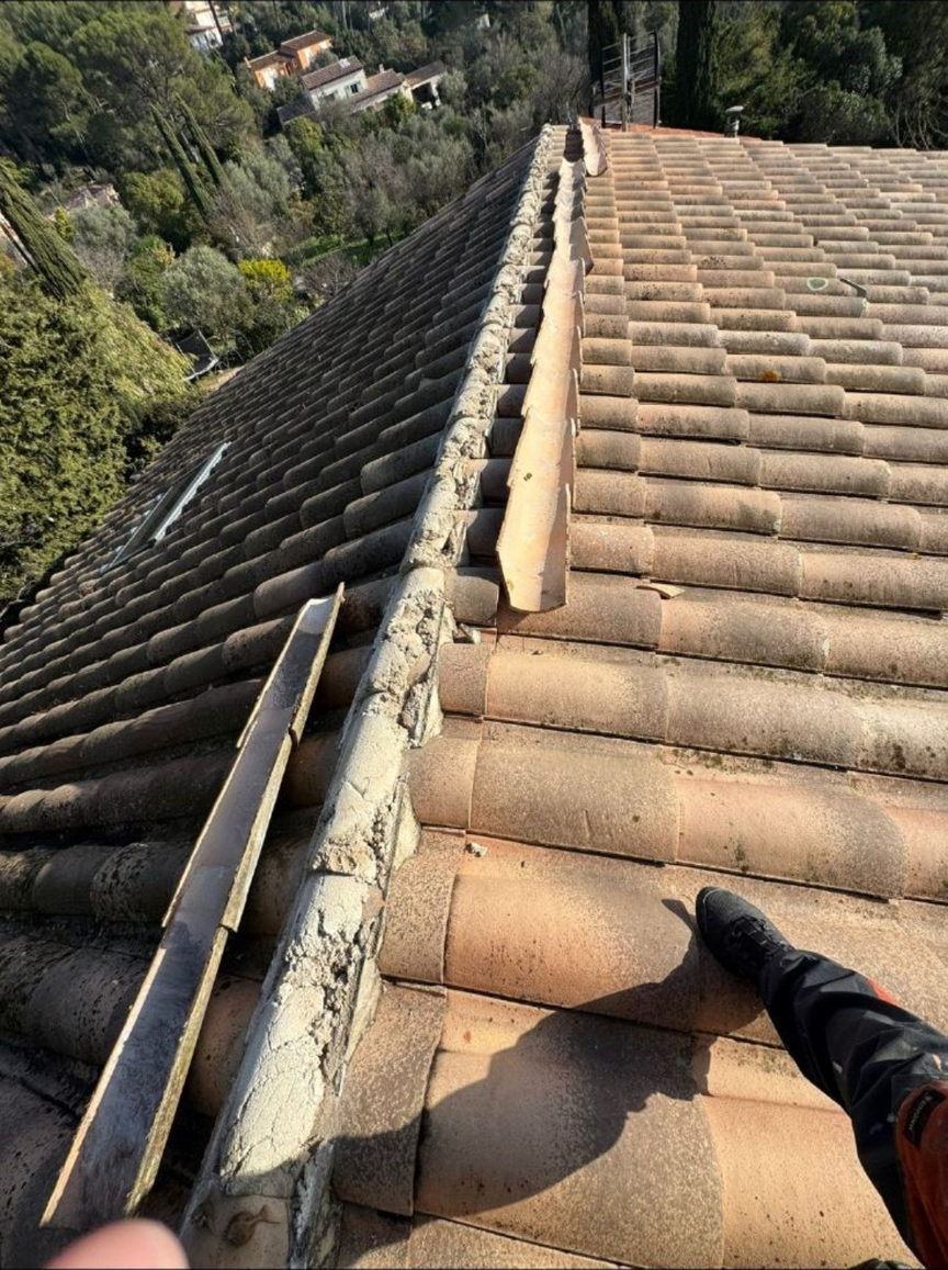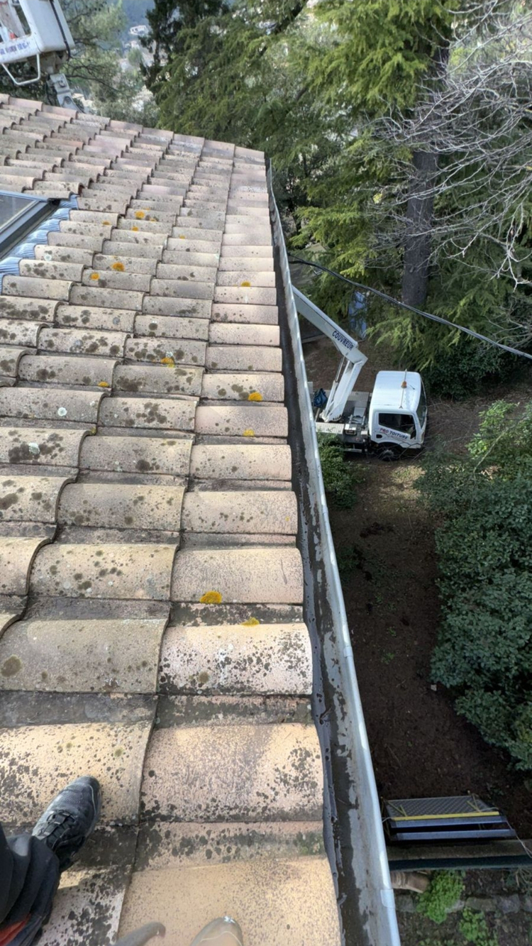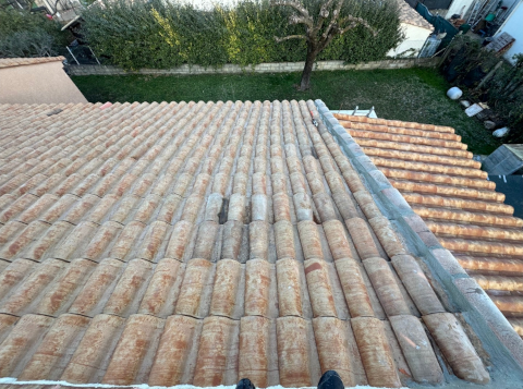 Remplacement de toiture complète sur bâtiment principal, nettoyage de toiture sur structure secondaire, intervention avec nacelle